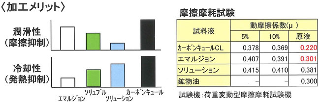 油分で摩擦抵抗を下げていて、今回紹介する切削液はカーボン粒子がベアリング玉の